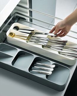 Η θήκη οργάνωσης συρταριού για μαχαιροπήρουνα είναι μοναδικά σχεδιασμένη για να δημιουργεί περισσότερο χώρο στο συρτάρι της κουζίνας σας.