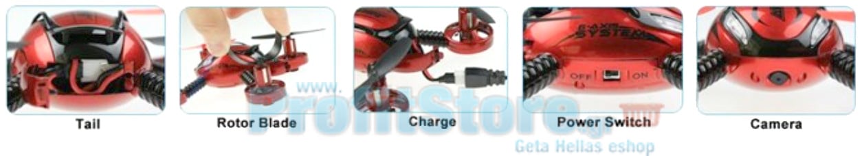 - Τετρακάναλο σύστημα ελέγχου με γυροσκοπικό σύστημα ελέγχου 6-axis για απόλυτα σταθερές πτήσεις.