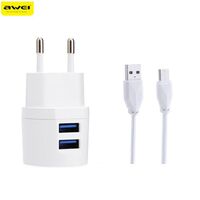 Ο υψηλής ποιότητας φορτιστής Awei με δύο εξόδους USB και καλώδιο micro USB είναι ένα απαραίτητο σετ για τον καθένα, καθώς μπορείτε να φορτίζετε δύο συσκευές ταυτοχρόνως και φυσικά... σε πολύ χαμηλή τιμή!