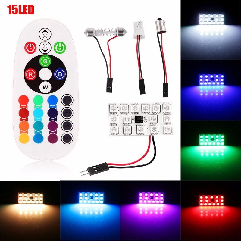 Λάμπα RGB που αλλάζει χρώματα με τηλεχειρισμό, με 15 ισχυρά LED για το εσωτερικό του αυτοκινήτου.