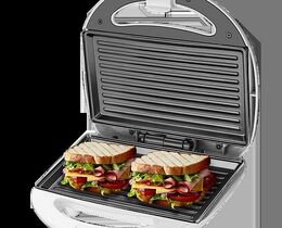 Διαθέτει αντικολλητικές πλάκες για εύκολο καθαρισμό, αντικραδασμική λαβή, αυτόματο έλεγχο θερμοκρασίας και ενδεικτική λυχνία λειτουργίας και θερμοκρασίας.