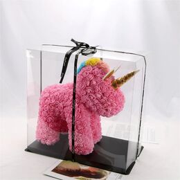Τριανταφυλλένιος Μονόκερος 40cm σε Συσκευασία Δώρου Light Pink Τεχνητά Ροζ Τριαντάφυλλα με Πολύχρωμη Χαίτη