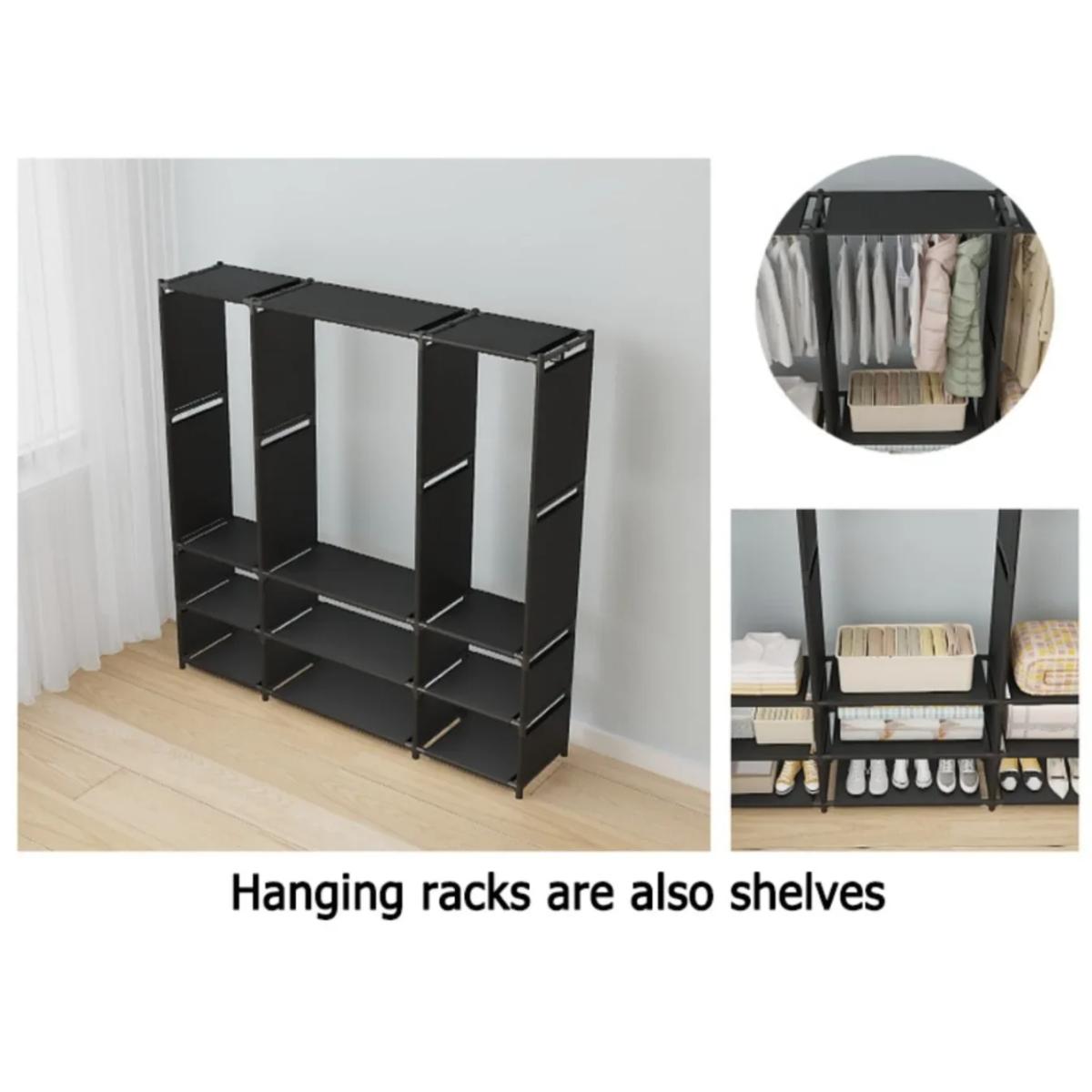 Τριπλή Ντουλάπα Ρούχων Μεταλλική με Ράφια & Κρεμάστρες 170x130x36cm Μαύρη
