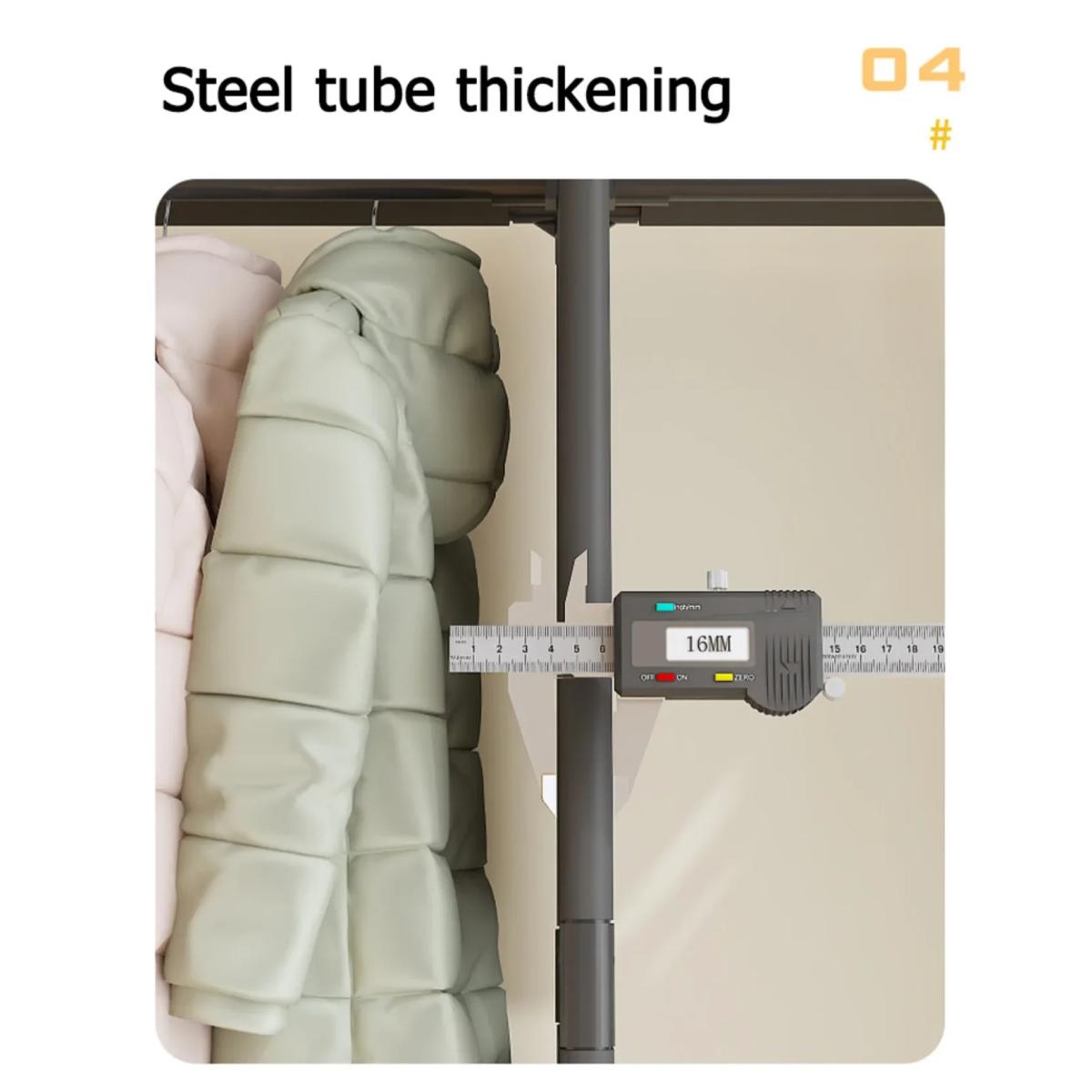 Η τριπλή μεταλλική ντουλάπα ρούχων 170×130×36 cm είναι η πρακτική λύση οργάνωσης για υπνοδωμάτια, χολ, σαλόνια ή επαγγελματικούς χώρους. Με ανθεκτικό σκελετό από σωλήνες PP/χάλυβα, προσφέρει σταθερότητα και μεγάλη αντοχή για καθημερινή χρήση.