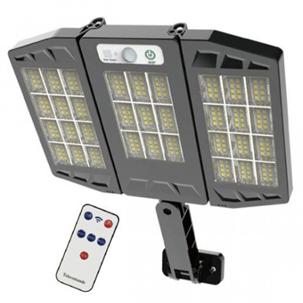 Τριπλό Ηλιακό Αδιάβροχο Αναδιπλούμενο LED Φωτιστικό με Ανιχνευτή Κίνησης, Βάση και Τηλεχειριστήριο
