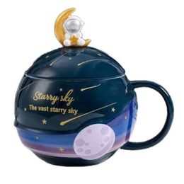 Τρισδιάστατη Κεραμική Κούπα Starry Sky 350ml με Καπάκι & Κουταλάκι - Μπλέ