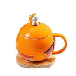 Τρισδιάστατη Κεραμική Κούπα Starry Sky 350ml με Καπάκι & Κουταλάκι - Πορτοκαλί
