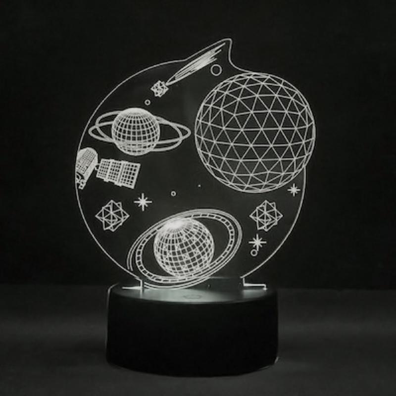 Τρισδιάστατο LED Φωτιστικό USB Διάστημα, 3D, Θερμό Λευκό Φως σε Χαραγμένο Πλέξιγκλας, OEM