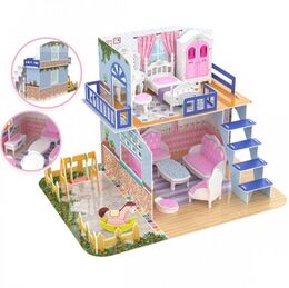 Τρισδιάστατο Συναρμολογούμενο Διώροφο Εξοχικό Σπίτι - Κουκλόσπιτο με Έπιπλα 30.5x25.5x23cm