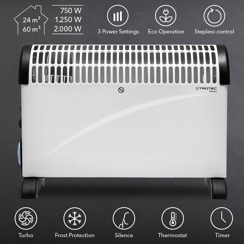 Trotec Επιδαπέδιος Θερμοπομπός 2000W Turbo με Ανεμιστήρα, 2 Επίπεδα Θέρμανσης, Ρυθμιζόμενο Θερμοστάτη & Χρονοδιακόπτη