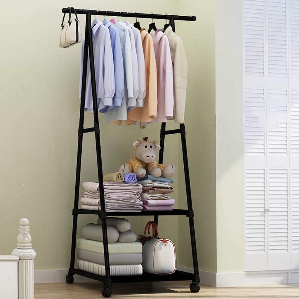 Τροχήλατη Κρεμάστρα - Βεστιάριο με Ραφιέρα & Παπουτσοθήκη Δαπέδου Μεταλλική Γκαρνταρόμπα Μαύρο 55x40x160cm