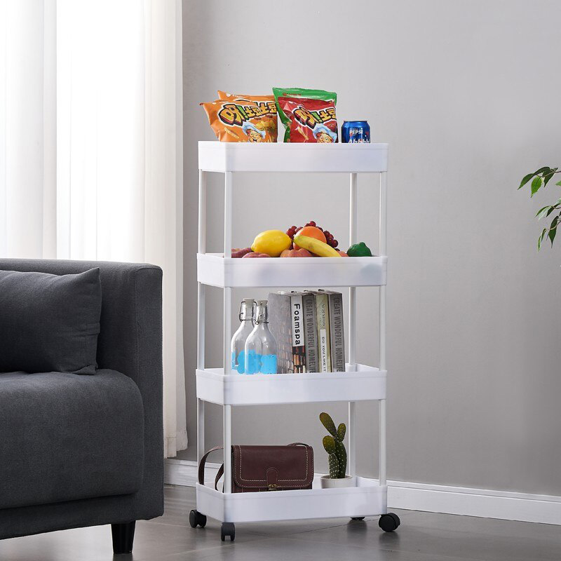 Τροχήλατη Ραφιέρα - Καρότσι Τεσσάρων Επιπέδων με 4 Καλάθια & Ροδάκια - Τρόλεϊ Οργάνωσης, Διακόσμησης 80x40x12.5cm - Λευκό