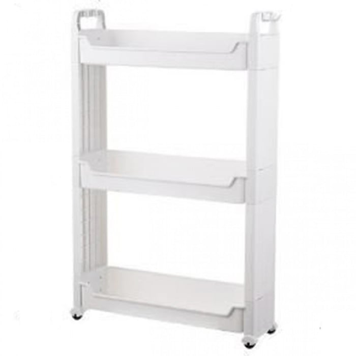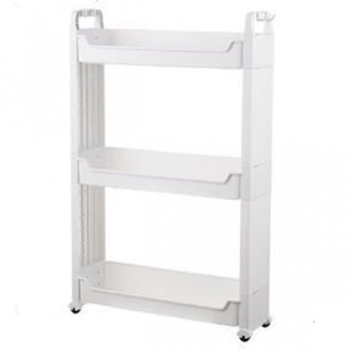 Τροχήλατη Στενή Ραφιέρα - Βάση Οργάνωσης με 3 Ράφια Πλαστική Λευκή 80x55x14εκ