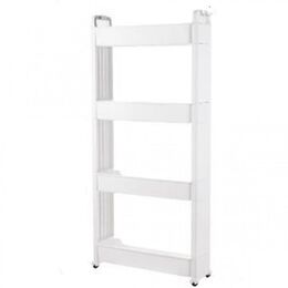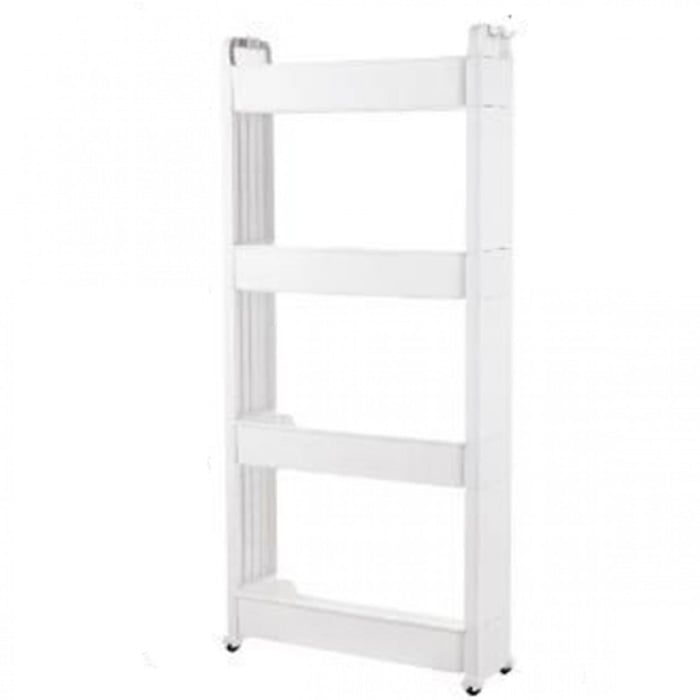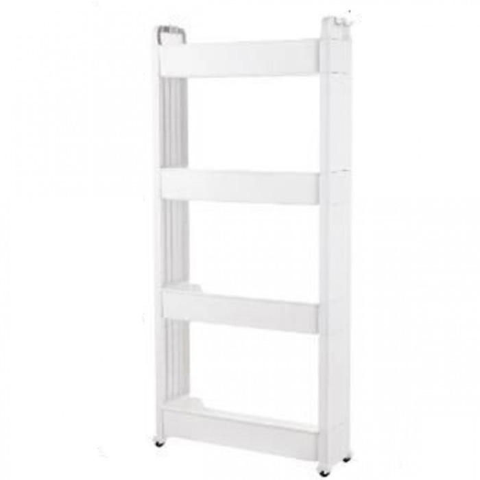 Τροχήλατη Στενή Ραφιέρα - Βάση Οργάνωσης με 4 Ράφια Πλαστική Λευκή 1,12x55x14εκ