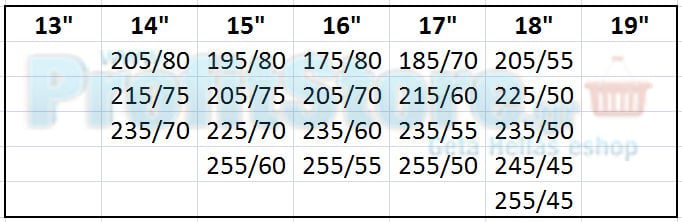Διαστάσεις ελαστικών