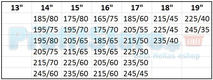 Διαστάσεις ελαστικών
