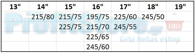 Διαστάσεις ελαστικών