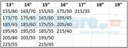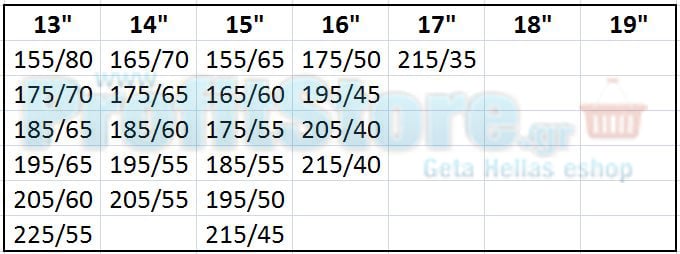 Διαστάσεις ελαστικών