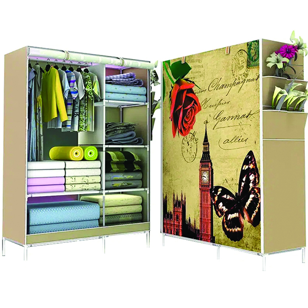Υφασμάτινη Αδιάβροχη Ντουλάπα 3D με Μεταλλικό Σκελετό, Ράφια και Ράγες για Ρούχα και Λευκά Είδη 105x45x170cm