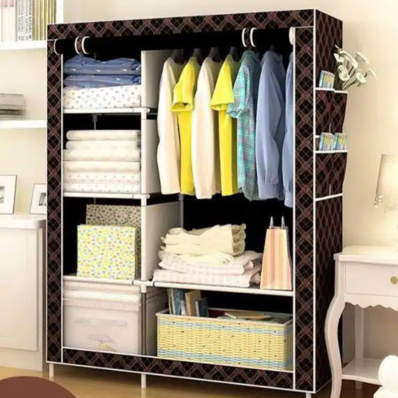 Εύκολα συναρμολογούμενη υφασμάτινη ντουλάπα με μεταλλικό σκελετό και ράφια, σχεδιασμένη να προστατεύει τα ρούχα και τα παπούτσια σας από τη σκόνη και τις βρομιές. Τοποθετείται σε υπόγεια, παιδικά δωμάτια, κρεβατοκάμαρες, σοφίτες κτλ.
