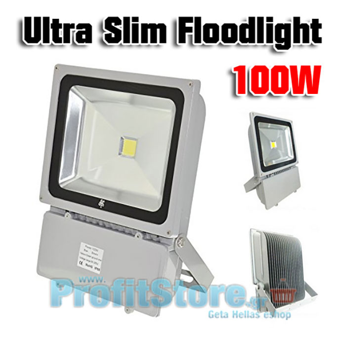 Ultra Slim Προβολέας LED 100W - Αδιάβροχος IP65 Υψηλής Απόδοσης - 80% οικονομία