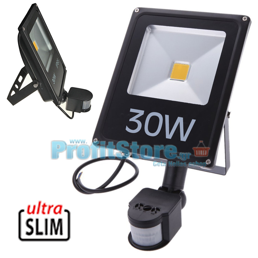 Ultra Slim Προβολέας LED 30w με Ανιχνευτή Κίνησης Λευκό 6000K Υψηλής Φωτεινότητας