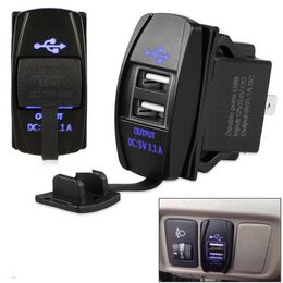 - 1 x Universal Αδιάβροχος Φορτιστής με 2 Εξόδους USB 5V 3.1A & Μπλε LED Φωτισμό