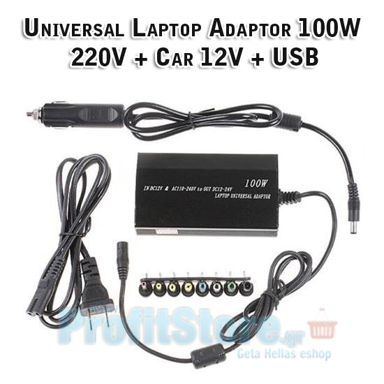 Universal Φορτιστής - Τροφοδοτικό για Laptop 100W με θύρα USB - 12V/220V