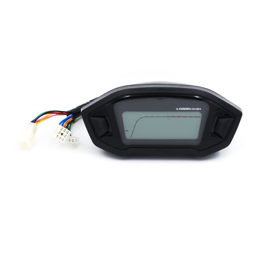 Το ψηφιακό στροφόμετρο παρέχει ενδείξεις όπως επίπεδο λαδιού, αλλαγής ταχύτητας, ταχύτητα σε χιλιόμετρα, χιλιομετρικές αποστάσεις, φλας κλπ.