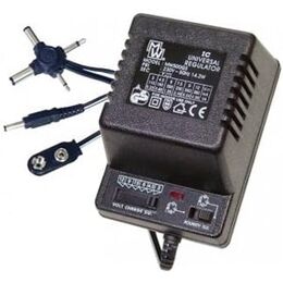 Μετασχηματιστής - τροφοδοτικό σταθεροποιημένο ac/dc 1,5v / 3v / 4,5v / 6v / 7,5v / 9v / 12v Κατάλληλος για πλήθος συσκευών. Με διακόπτη ρύθμισης της τάσης (volt) και με τα 6 διαφορετικά βύσματα για προσαρμογή σε πλήθος συσκευών.