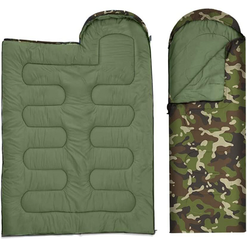Sleeping Βag μονό 2 εποχών με κουκούλα, σε χρώμα παραλλαγής.