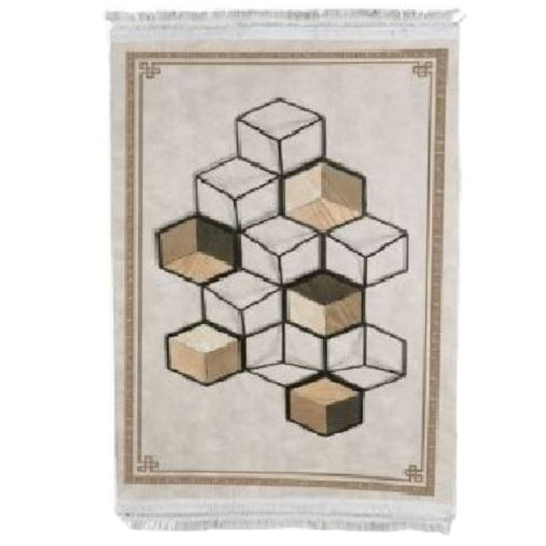 Υψηλής Ποιότητας Αντιολισθητικό και Υποαλλεργικό Χαλί με Τρισδιάστατο Γεωμετρικό Σχέδιο-Κύβο & Κρόσσια σε Μπεζ – Μαύρο Χρώμα 290x200εκ
