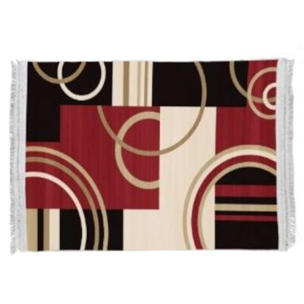 Υψηλής Ποιότητας Αντιολισθητικό και Υποαλλεργικό Χαλί με Τρισδιάστατο Μοντέρνο Σχέδιο-Κύκλος & Κρόσσια σε Κόκκινο – Μαύρο Χρώμα 290x200εκ