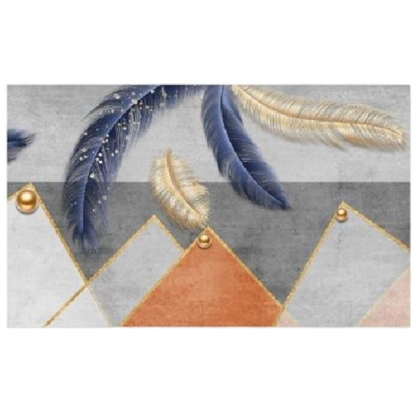 Υψηλής Ποιότητας Αντιολισθητικό και Υποαλλεργικό Χαλί με Τρισδιάστατο Σχέδιο με Φτερά, Γεωμετρικά Σχήματα και Κρόσσια σε Γκρι Χρώμα 160x230εκ
