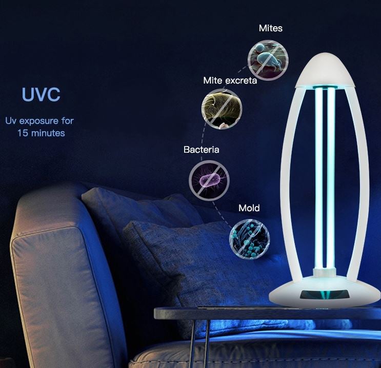 Πρωτοποριακή λάμπα αποστείρωσης του αέρα και του χώρου, με ασύρματο τηλεχειριστήριο! Ο λαμπτήρας UV σκοτώνει τους μικροοργανισμούς, μέσω της υπεριώδους ακτινοβολίας και της εκπομπής όζοντος, προκαλώντας αποδομή του DNA των μικροοργανισμών (βακτηρίδια, ιούς, και άλλα παθογόνα), επιτυγχάνοντας έτσι, την απολύμανση του αέρα.