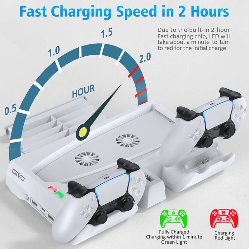 Η βάση εξοπλίζεται με 2 θέσεις φόρτισης για τα χειριστήρια PS5, φορτίζοντας γρήγορα μέσα σε 2-3 ώρες.
