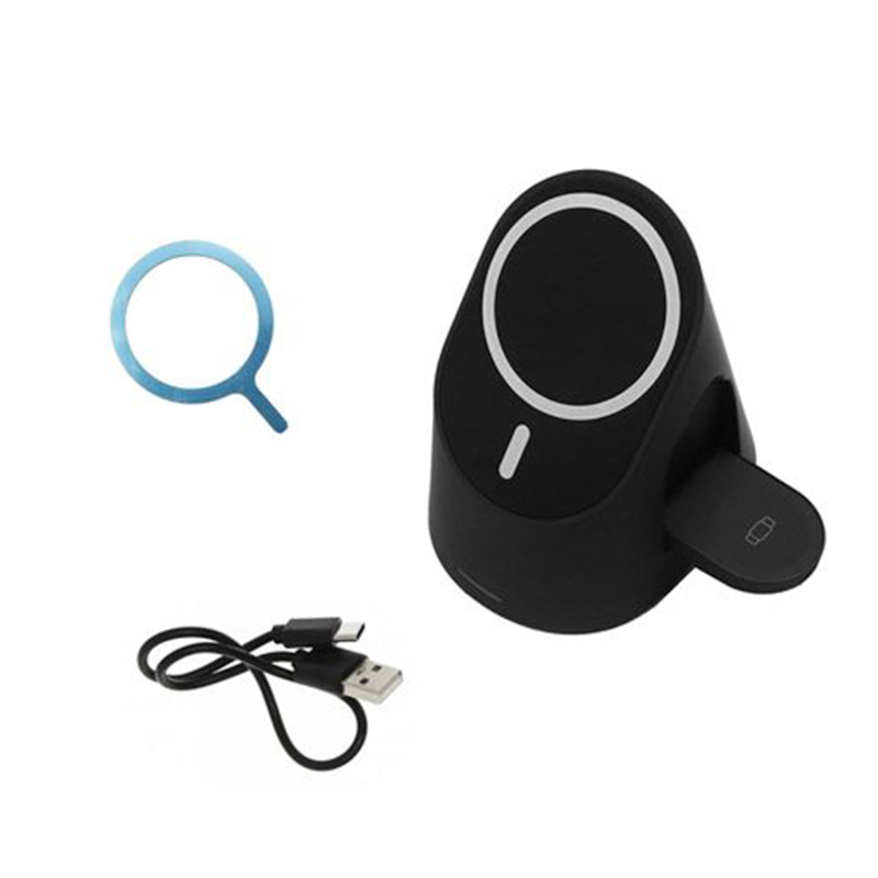 Βάση ασύρματης Φόρτισης 3 σε 1 με θύρα USB Type C 15W και Μαγνητικό Δαχτυλίδι Μαύρο
