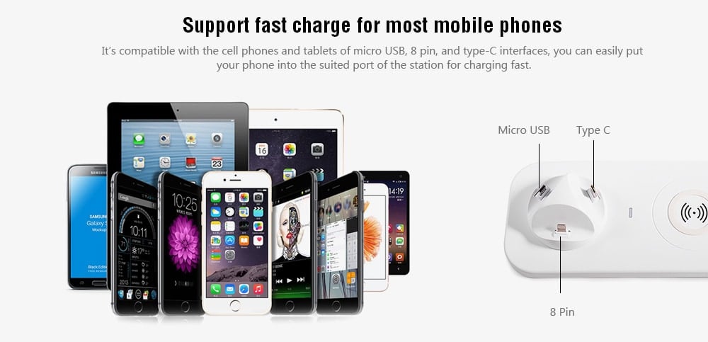Βάση Ασύρματης και Ενσύρματης Φόρτισης Κινητών micro USB/Lightning/Type-c/USB 5 σε 1 - USB & Wireless Charger 5 in 1