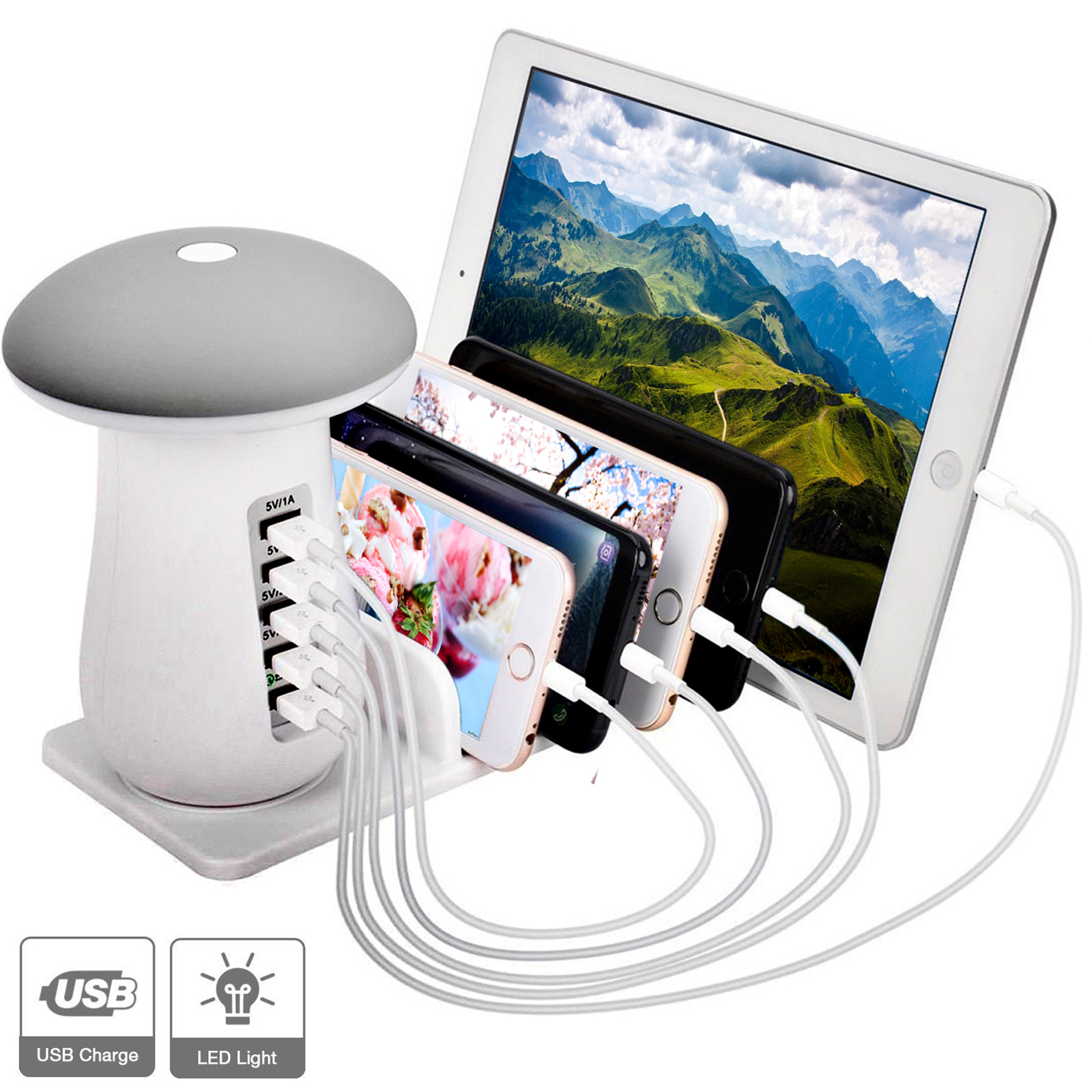Ο επιτραπέζιος φορτιστής πολύμπριζο USB με 5 θύρες και LED Φωτιστικό Γραφείου είναι ένα πρωτοποριακό gadget που συνδυάζει έναν πολυφορτιστή και ένα απλό κομψό φωτιστικό!