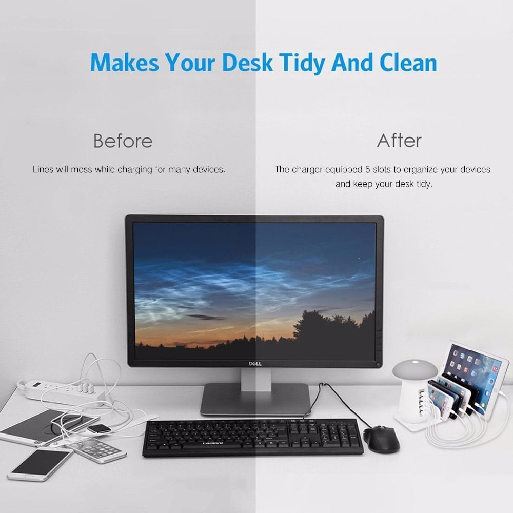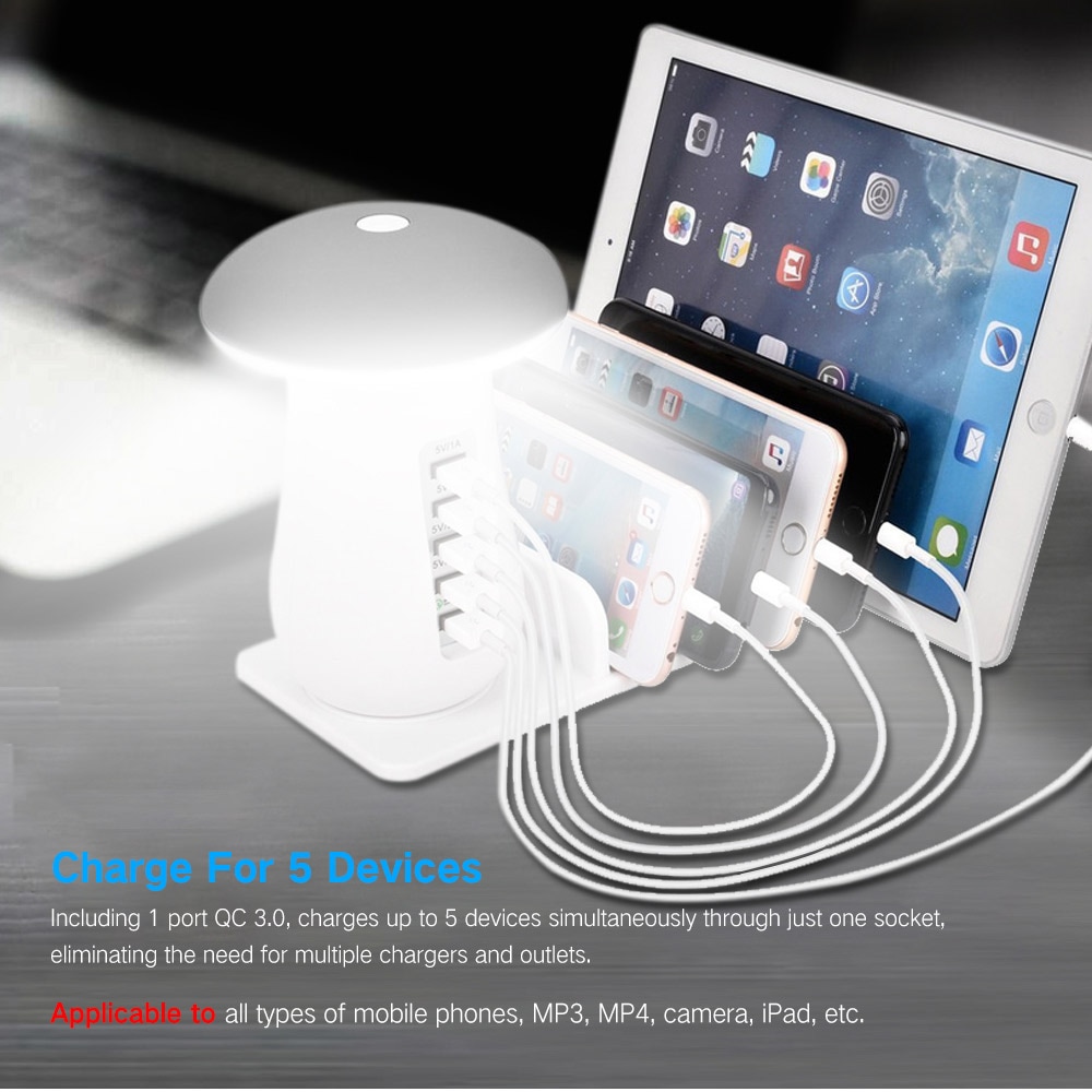 Βάση Φόρτισης 5 x USB Fast Charge & LED Φωτιστικό Γραφείου - Επιτραπέζιος Desktor Φορτιστής 5-Port Quick Charger