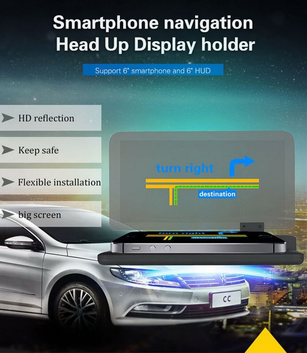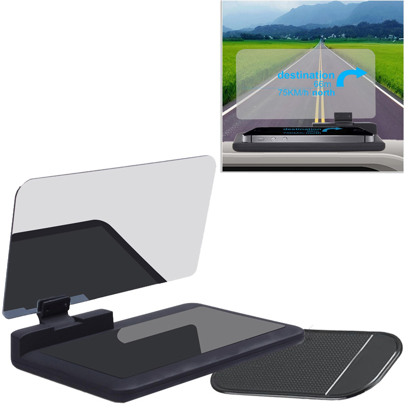 Βάση Κινητού με Οθόνη Αντανάκλασης - Καθρέπτη Αυτοκινήτου Αντιολισθητική HUD Head Up Display - Universal Smartphone Holder & HUD Display