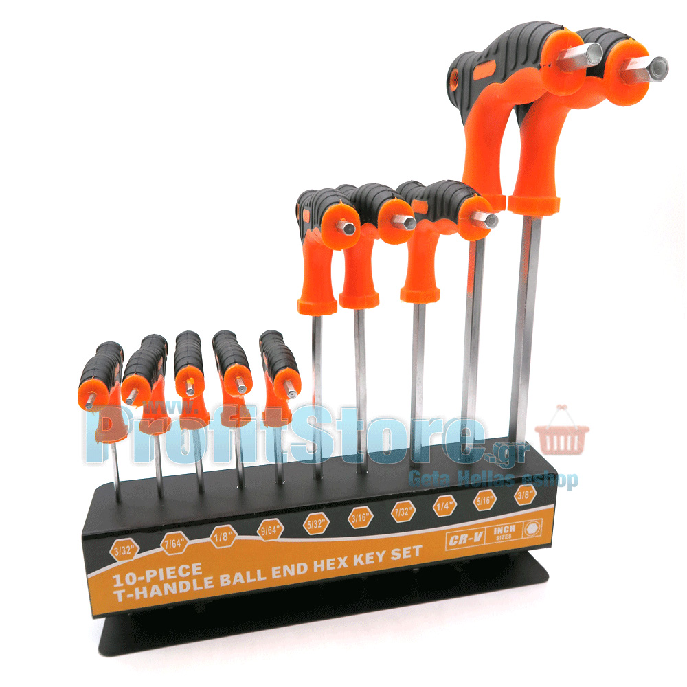 - 10 κλειδιά άλλεν: 3/32'', 7/24'', 1/8'', 9/64'', 5/32'', 3/16'', 7/32'', 1/4'', 5/16'', 3/8''