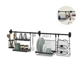 Βάση Οργάνωσης Κουζίνας Σετ Επιτοίχια Ράφια με Γάντζους σε Ράγα Μεταλλική 119x24x38cm Μαύρα