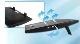 Αυτή η βάση υπολογιστή, είναι κατασκευασμένη από ελαφρύ ανθεκτικό πλαστικό για διάχυση της θερμότητας, με ένα ζευγάρι αθόρυβων ανεμιστήρων να τραβάει τον αέρα.