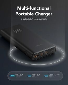 Με μια θύρα USB-C 100W, μια θύρα USB-C 20W και μια θύρα QC3.0 18W, αυτό το power bank μπορεί να φορτίσει έως και 3 συσκευές ταυτόχρονα.