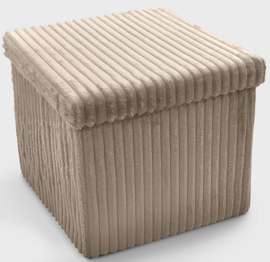 Βελούδινο Σκαμπό με Κοτλέ Ύφανση και Αποθηκευτικό Χώρο 38x38x38cm Μπεζ