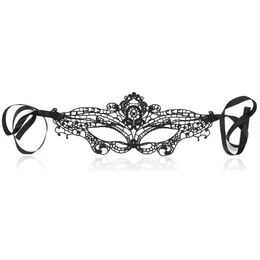 Βενετσιάνικη Υφασμάτινη Μάσκα Ματιών Μακραμέ με Δαντέλα και Κορδελάκια Μαύρη