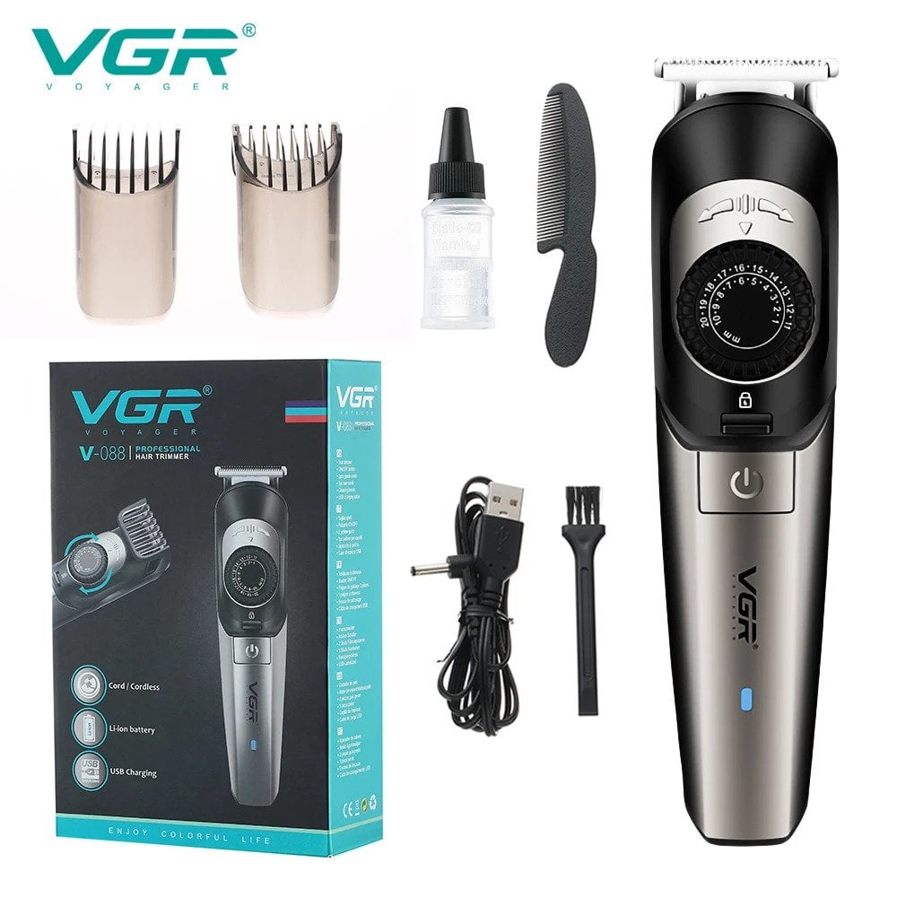 VGR Αδιάβροχη Επαναφορτιζόμενη Επαγγελματική Κουρευτική Μηχανή με Λεπίδα Ανοξείδωτου Χάλυβα Ρυθμιζόμενη 1-20mm