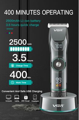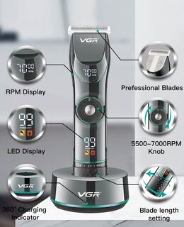 - 1 x VGR Επαναφορτιζόμενη Επαγγελματική Κουρευτική Μηχανή 10W Ρυθμιζόμενου Μήκους Κοπής με 15 Ταχύτητες & LCD Οθόνη