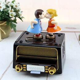 Vintage Κουρδιστό Μουσικό Κουτί με Συρταράκι - Radio Music Box Valentine Kiss Edition
